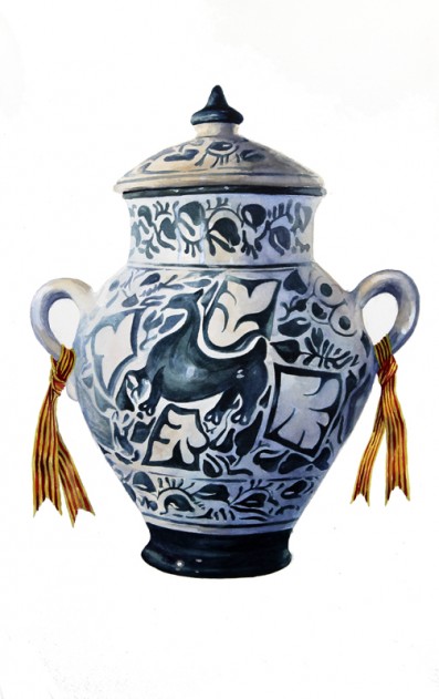 Copa, y picheras de Teruel, zerámica sefardí. Acuarela dica papel, 60 x 40 cm.